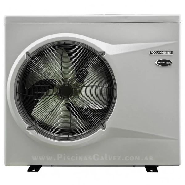 Bomba de calor para climatizar piscinas POOL-INVERTER 110 con intercambiador de titanio, equipo eléctrico de 230V – 93.100 BTU (27.3kW). Las bombas de calor Vulcano con Tecnología INVERTER son equipos silenciosos que gracias a su COP promedio de 11 reducen a la mitad el costo de funcionamiento del equipo.