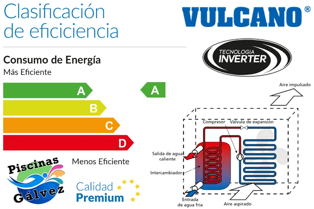 Calentar el agua de la piscina es la solución infalible con el sistema de bombas de calor inverter de la reconocida marca Vulcano, que ofrece un consumo energético muy bajo.