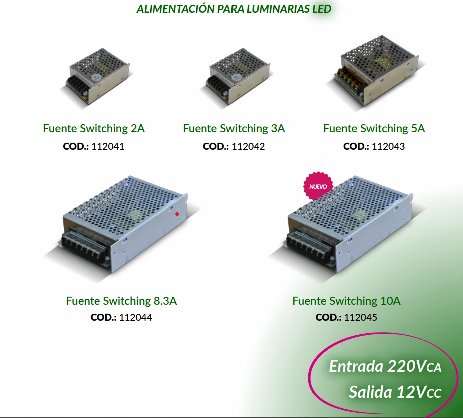 Fuente switching 12V 2A (24W) para alimentar luminarias LED.