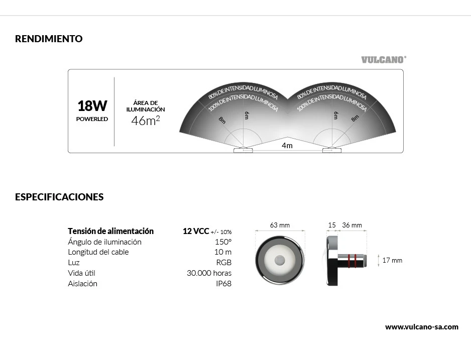 Luminaria subacuática PowerLED 18W RGB 12 VCC.
