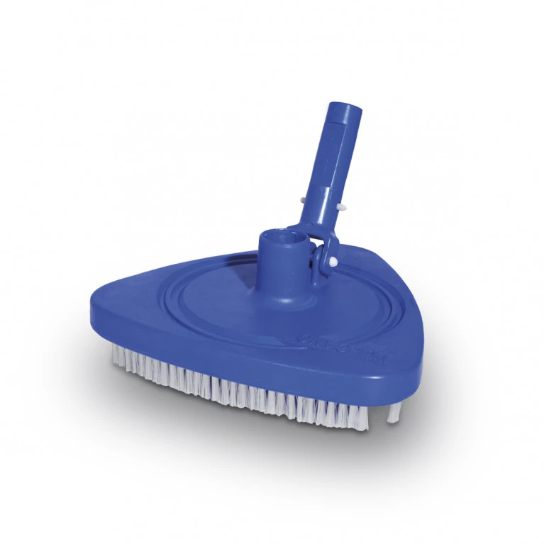 Limpia fondo triangular robusto y pesado con cepillos de polipropileno intercambiables. Su diseño permite limpiar esquinas y recodos fácilmente.