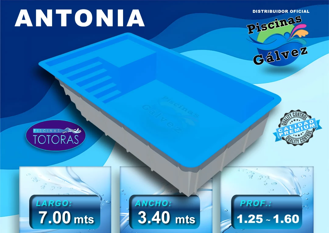 En resumen, la piscina "Antonia" de Totoras no solo es un símbolo de lujo y estilo, sino también una inversión en el bienestar y el disfrute personal. Con su diseño cuidadosamente pensado y su garantía de calidad, esta piscina se erige como la opción ideal para aquellos que buscan transformar su hogar en un verdadero paraíso de recreación y descanso.