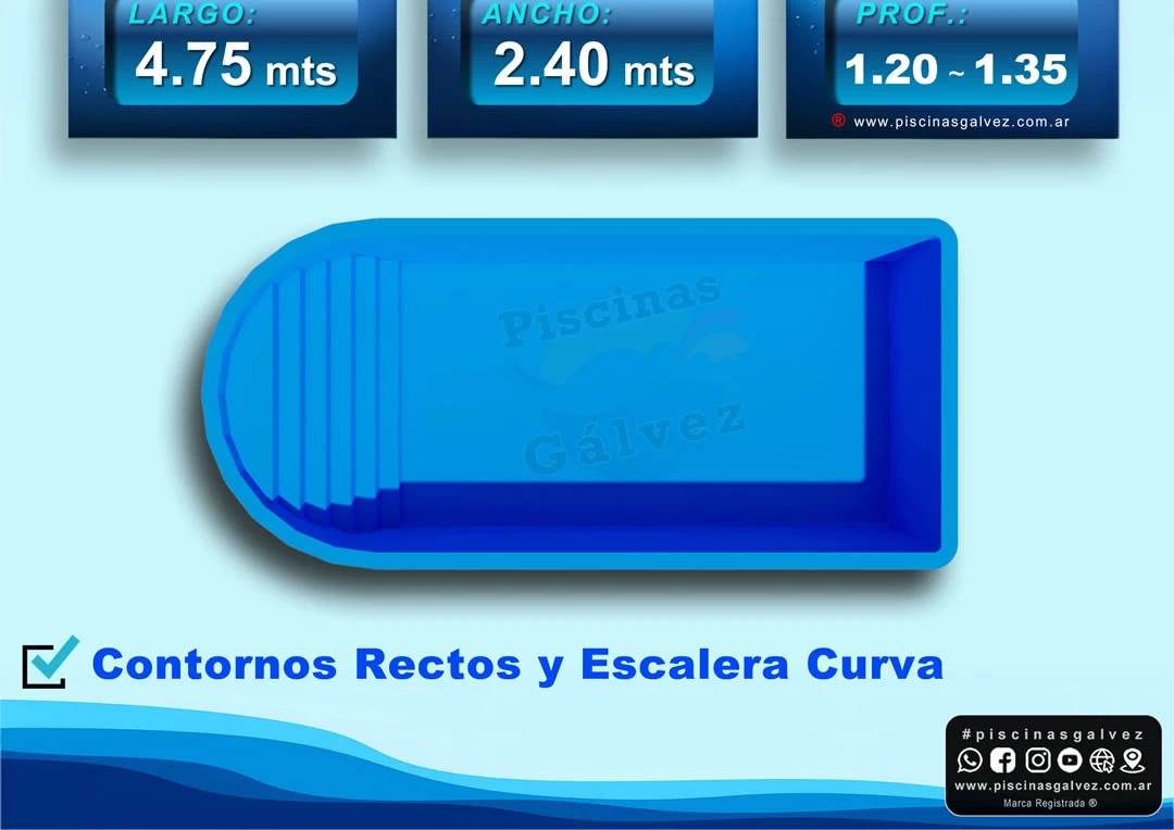 - Profundidad: 1.20 mts. a 1.35 mts.