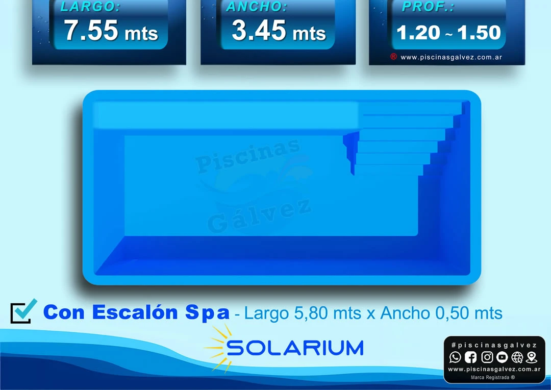 - Solarium: Escalón Spa - Largo 5.80 mts x Ancho 0.50 mts