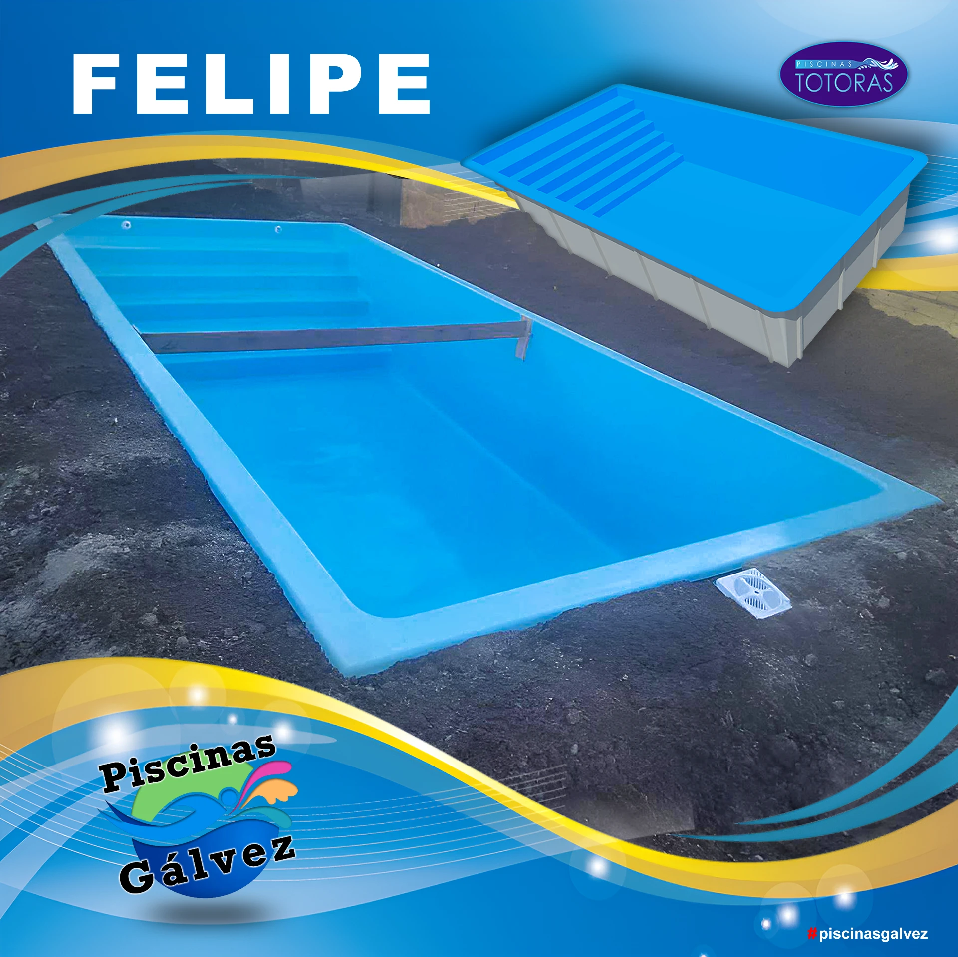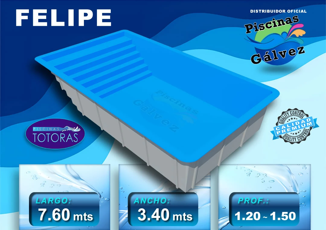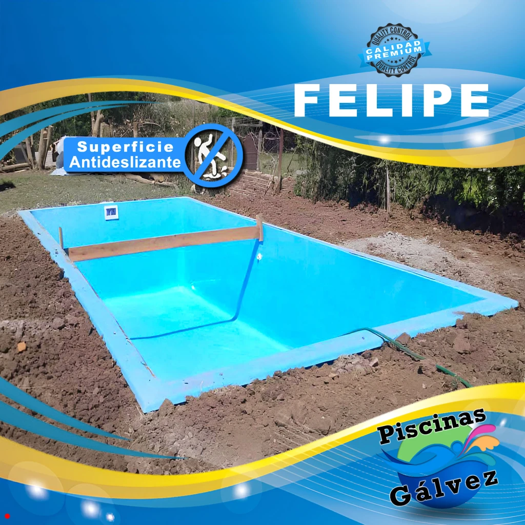 Con su combinación de estilo, calidad y funcionalidad, la piscina Felipe es una inversión en el disfrute y el bienestar de tu hogar. Disfruta de un oasis de tranquilidad y diversión en tu propio patio con este impresionante modelo de Piscinas Totoras.