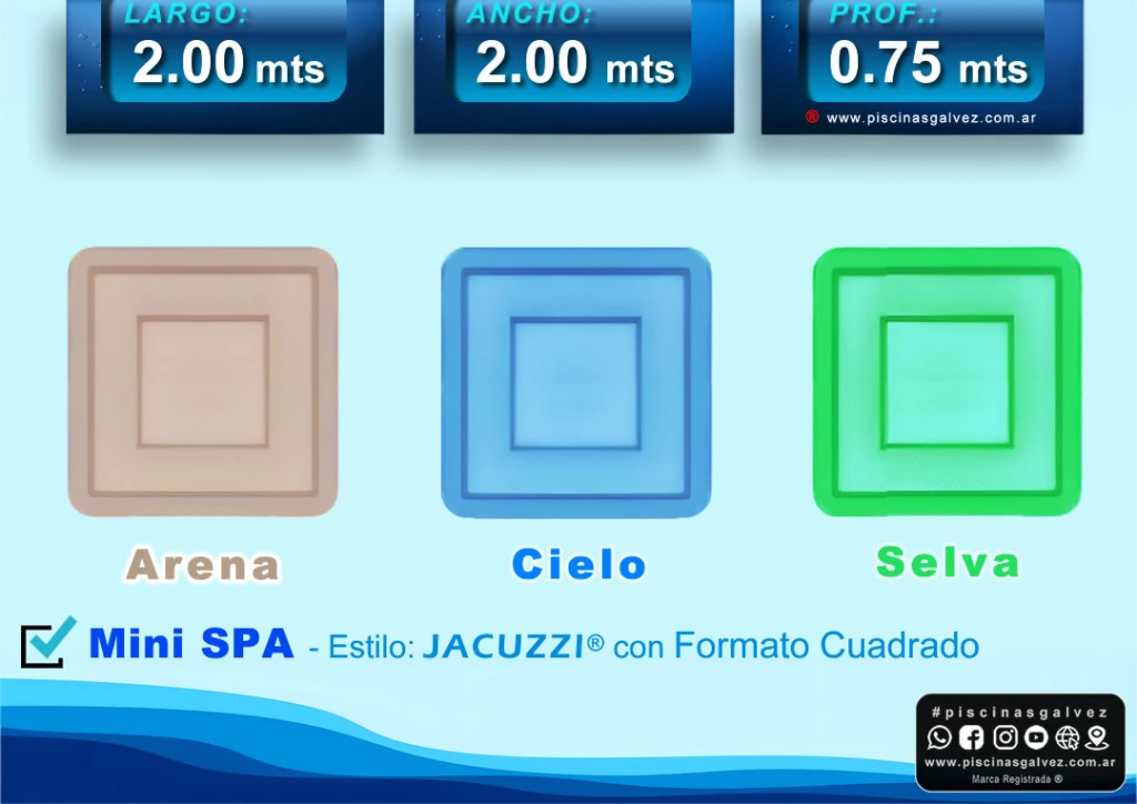 El Mini SPA cuadrado de Piscinas Totoras es la opción perfecta para quienes desean disfrutar de una experiencia de relax completa en un espacio compacto.