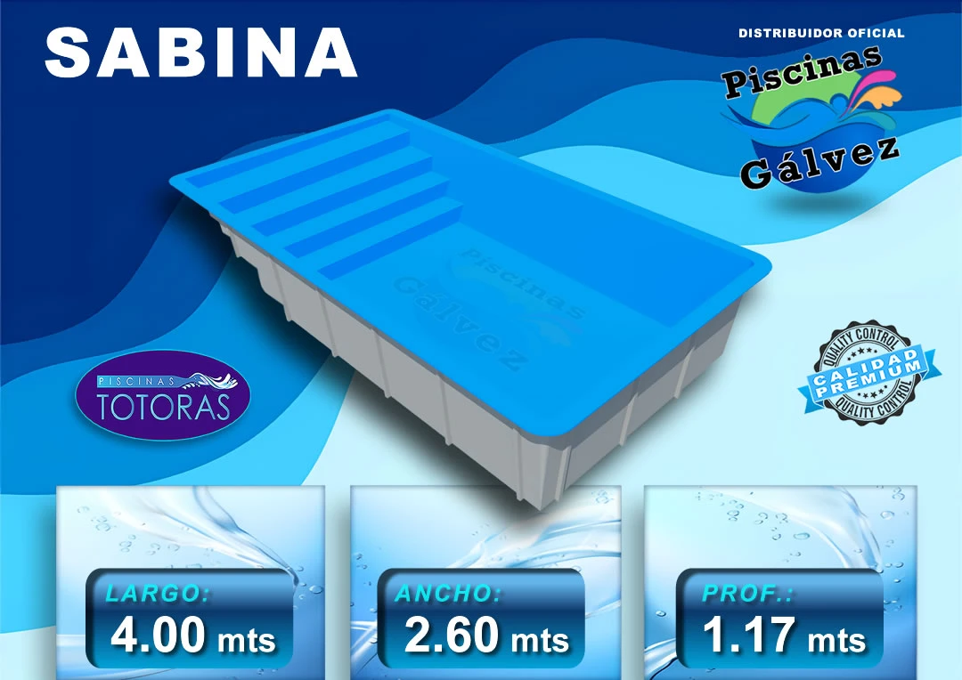 Garantía: Como todas las piscinas de Piscinas Totoras, la SABINA cuenta con una sólida garantía de 15 años en su casco, brindando tranquilidad y confianza a los compradores respecto a su durabilidad y calidad a largo plazo. Con la piscina SABINA con calidad premium, puedes disfrutar de momentos inolvidables en el agua sin preocupaciones.