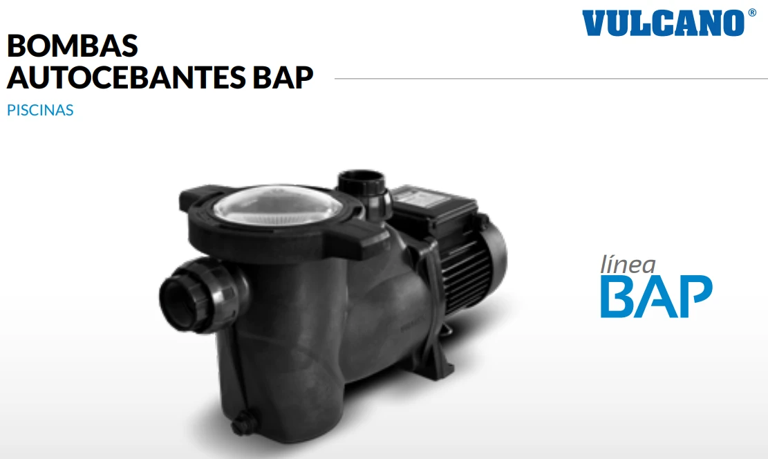 Bomba autocebante BAP 100 Vulcano de 1 HP de potencia y tensión monofásica de 220V-50HZ.