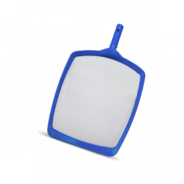 Saca hojas plástico con red plana para mango de diámetro ø32 mm. Pensado para colectar impurezas de la superficie. Tiene el mango reforzado y una cuña en forma de pala para hacer más sencilla la recolección en el fondo de la piscina.