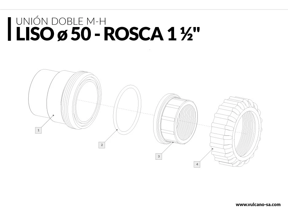 Unión doble MH ø 50 x 1 1/2" (pega/roscar)