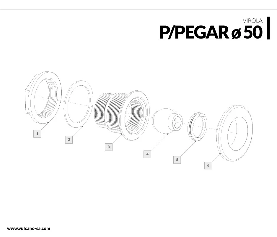 Virola para piscinas de fibra de vidrio, con aro fijo blanco, y cuerpo de ø 50mm para pegar.
