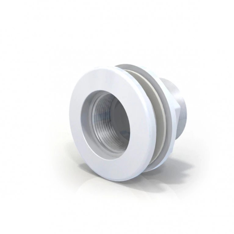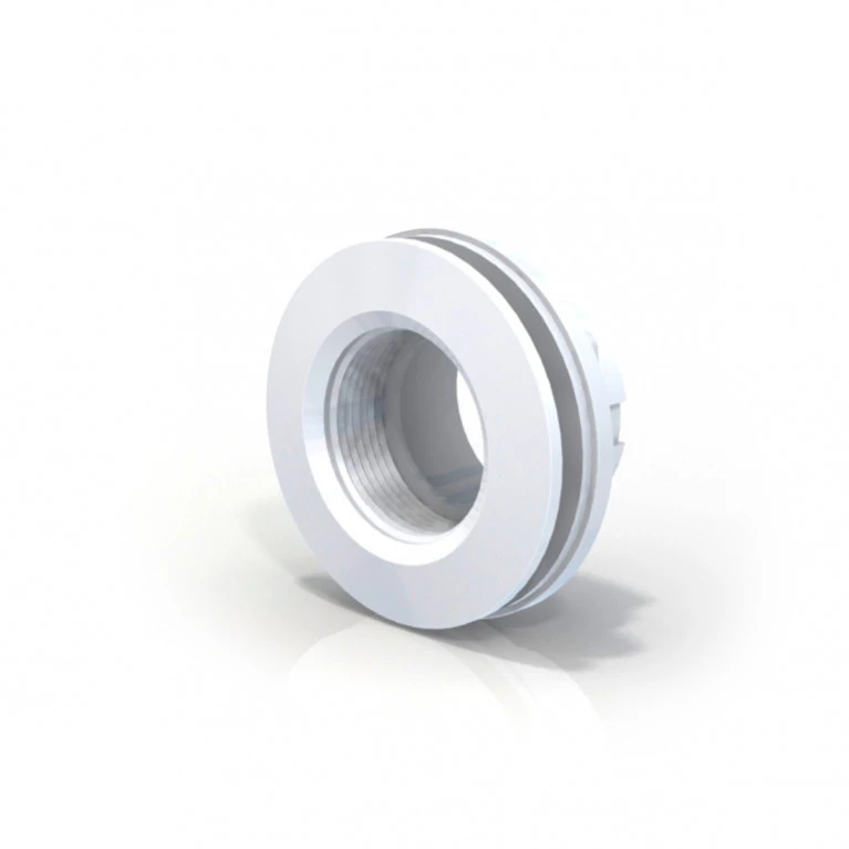 Virola para piscinas de fibra de vidrio, con aro fijo blanco, y cuerpo con rosca hembra de 1 1/2".